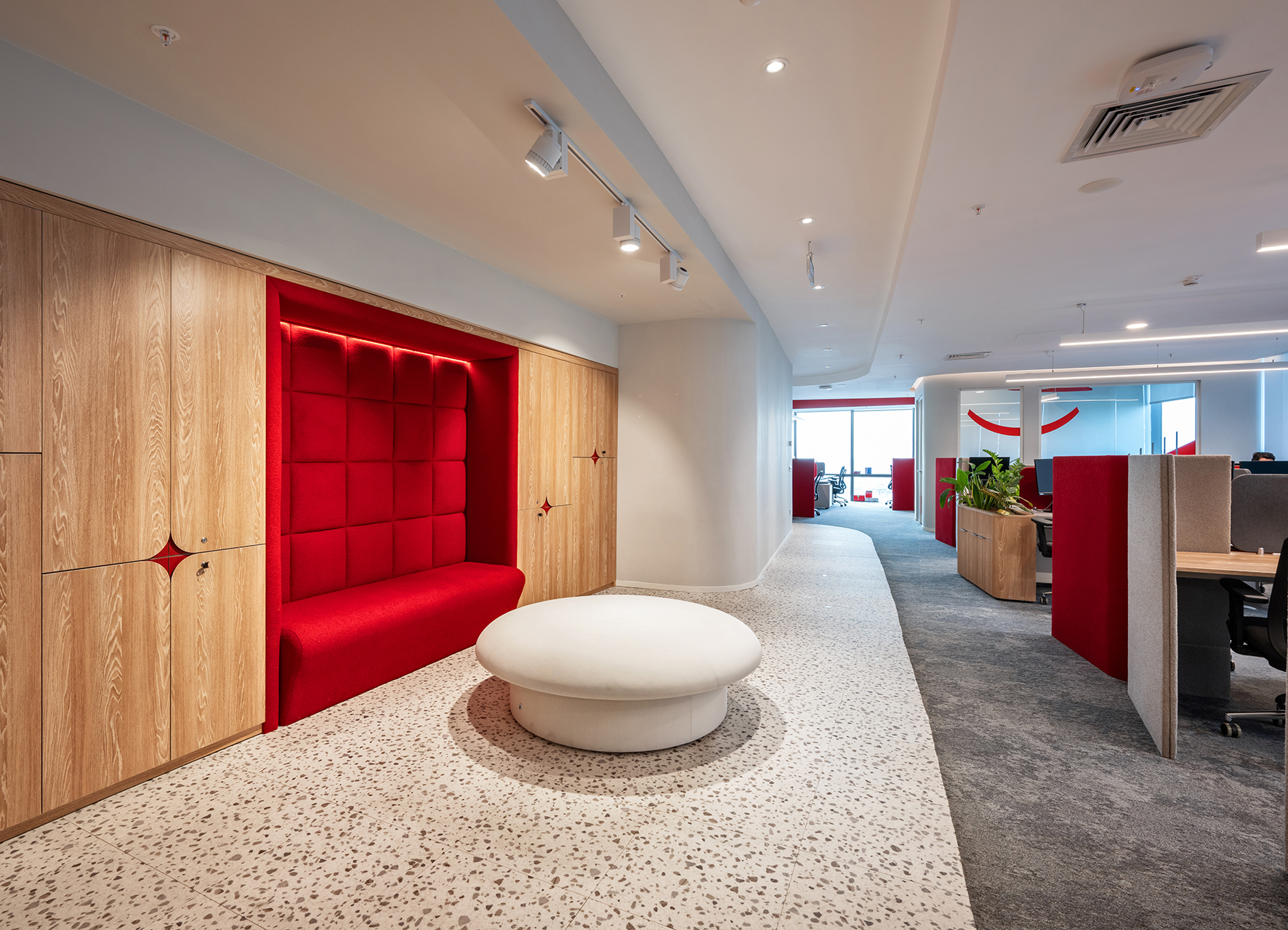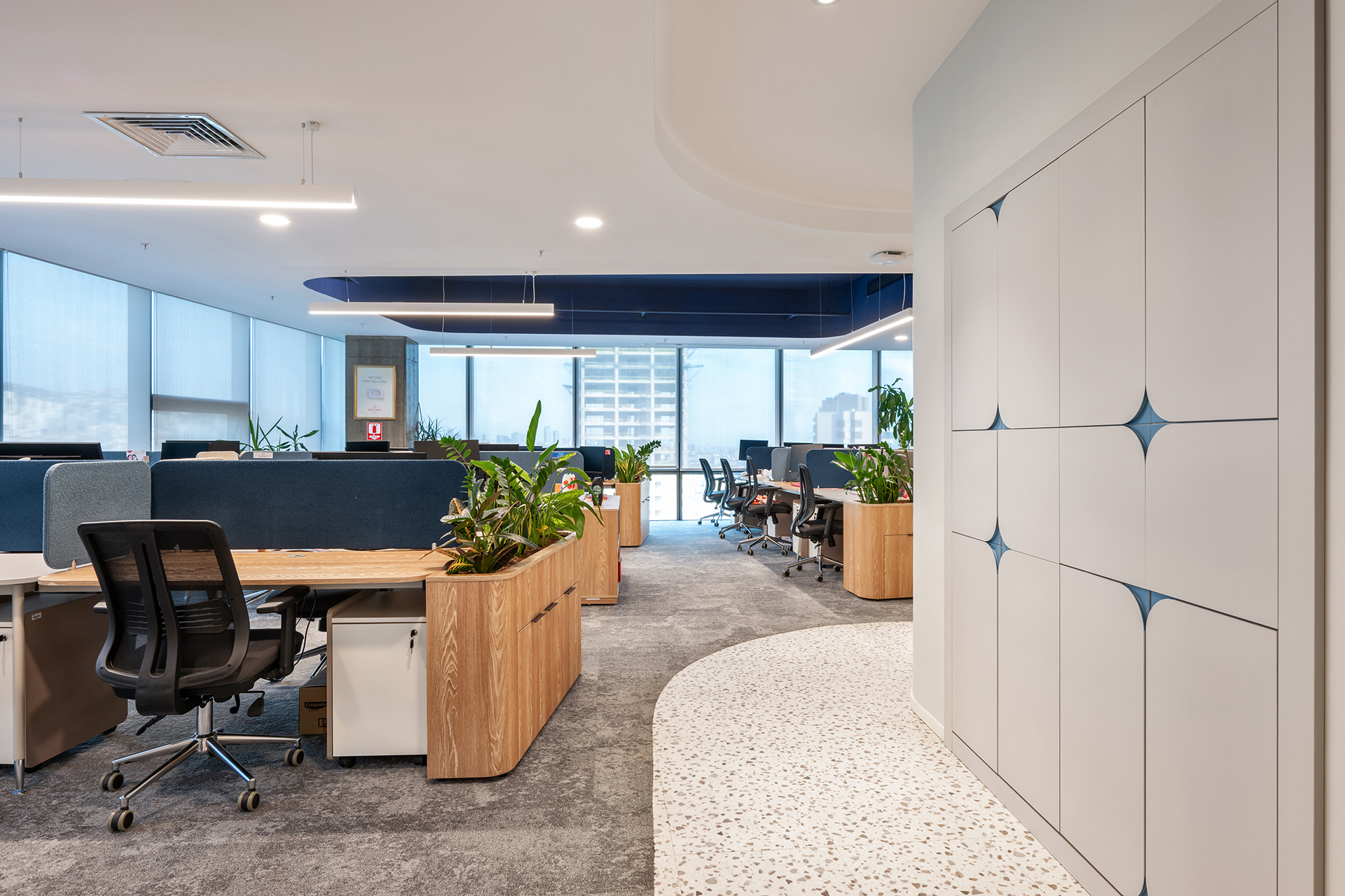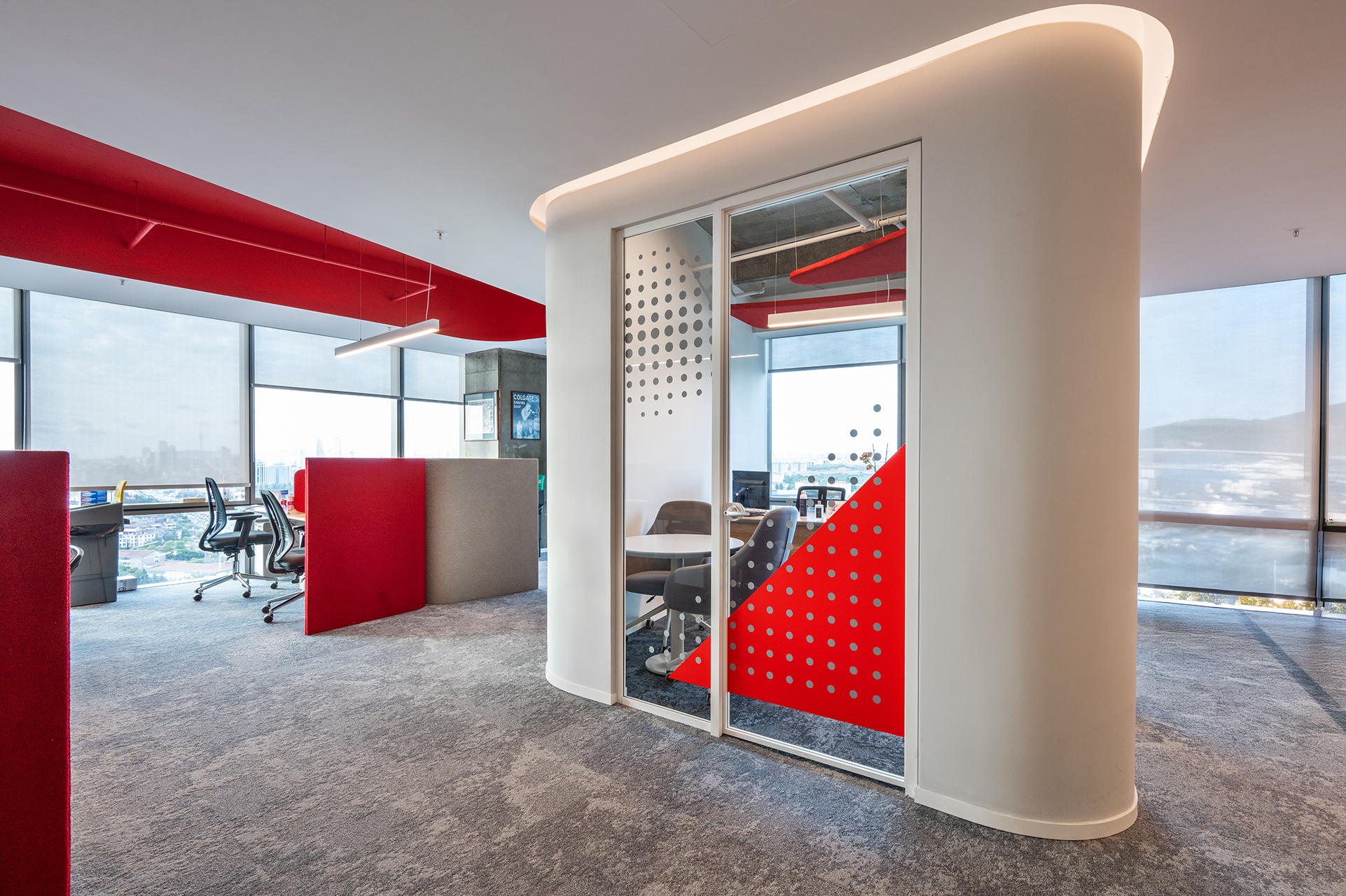 COLGATE TÜRKİYE; Ofisin mimari tasarımı, firmanın kurumsal kimliği ile uyumlu ve işlevsel ihtiyaçlarını karşılayacak şekilde tasarlanmıştır. Bu yaklaşım ile yapılan tasarımda kullanıcıların bir araya gelmesi hedeflenerek yenilikçi çözümler beraberinde açık ve kapalı mekanlar tasarlanmıştır.