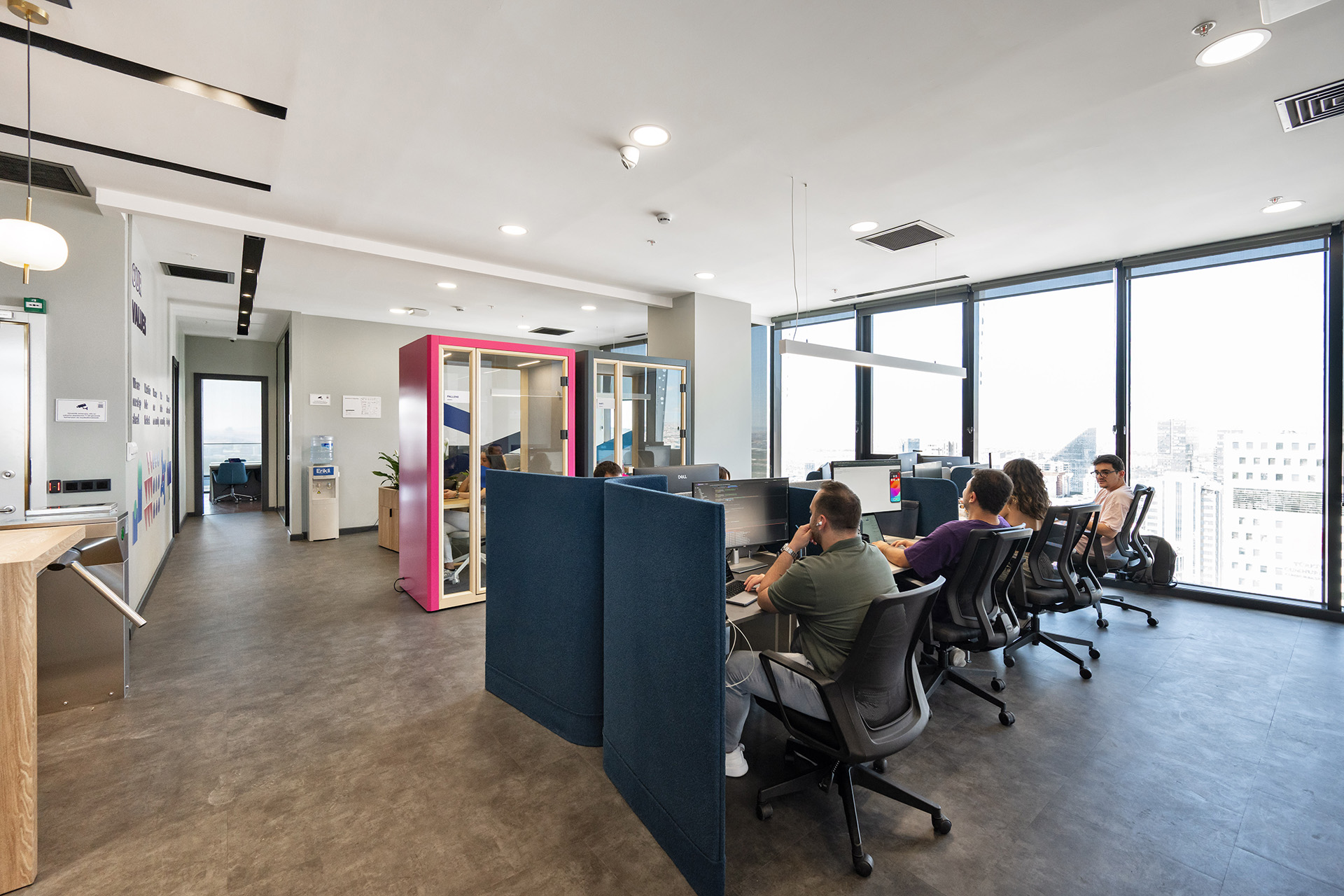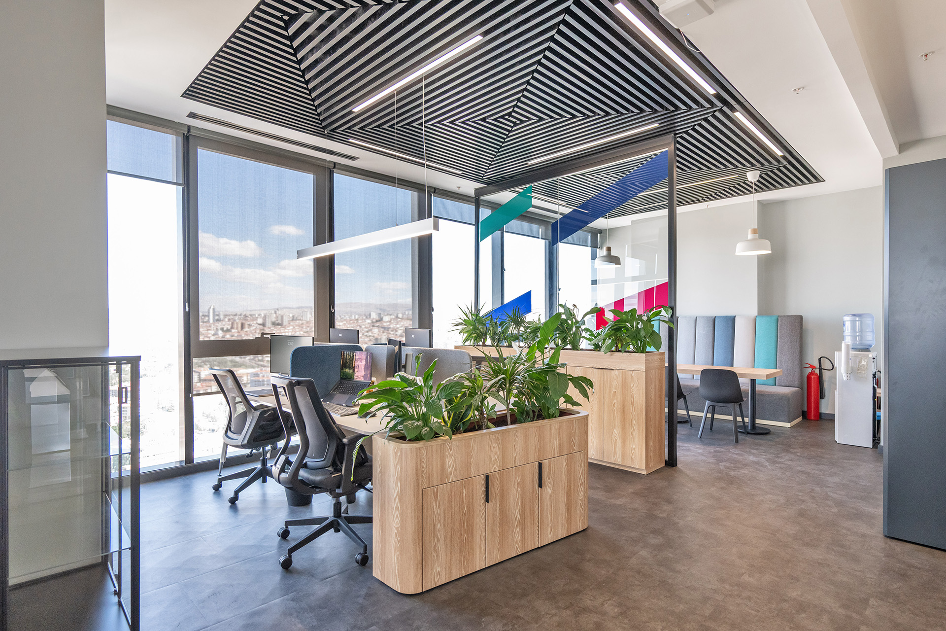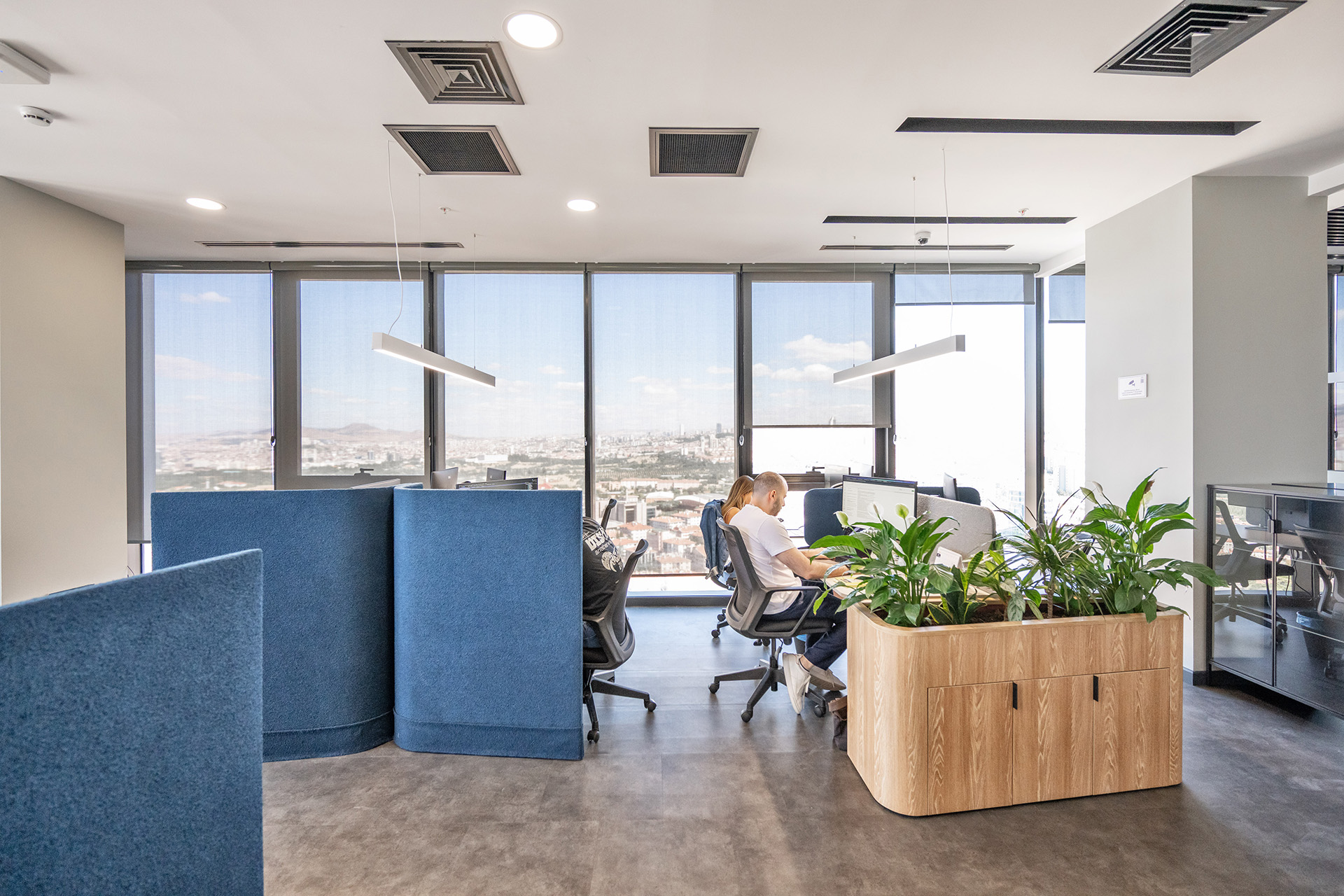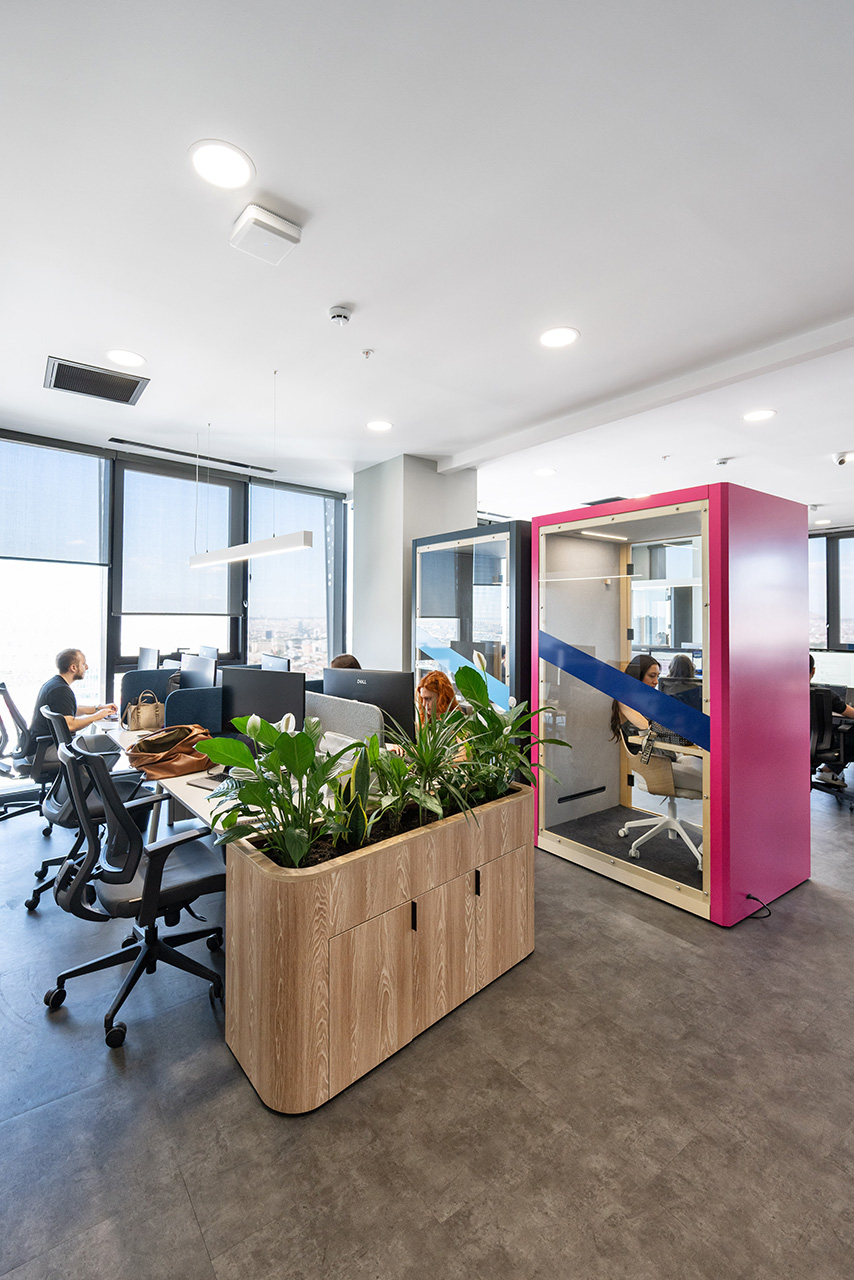 Commencis Ankara ofisinde, teknoloji odaklı kurumsal yapıyı destekleyen yenilikçi ve dinamik bir çalışma ekosistemi kurgulanmıştır. Mekâna entegre edilen canlı renkli odaklanma birimleri ve esnek sosyal alanlar sayesinde, yüksek işlevsellik ile enerjik bir atmosfer bir araya getirilmiştir. Açık ofis kurgusunda benimsenen modern tasarım dili, kullanıcı motivasyonunu en üst düzeye çıkaran ferah ve ilham verici bir yerleşim düzeni sunmuştur.