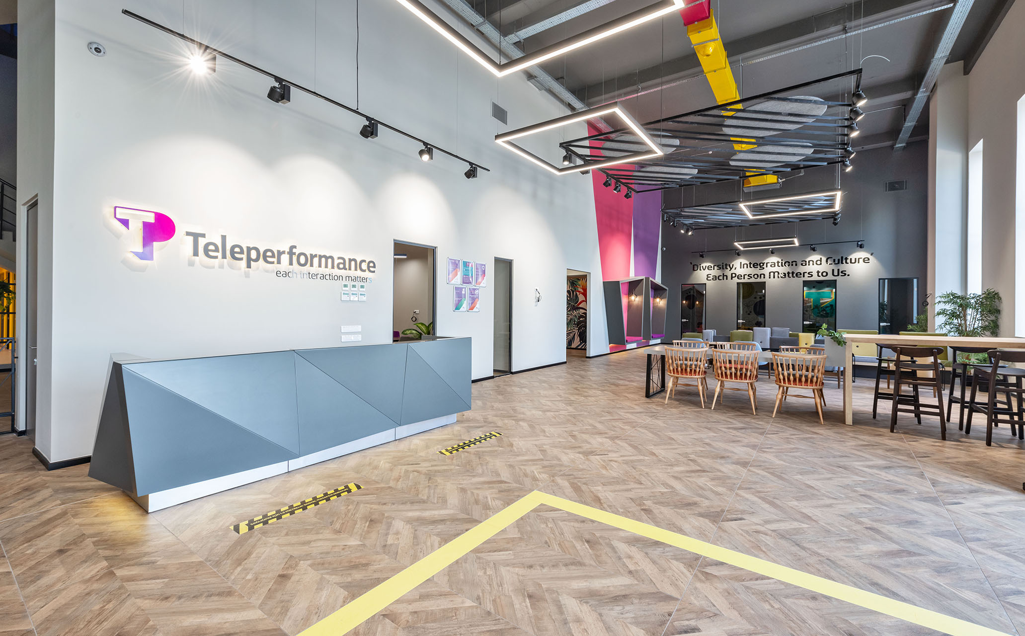 Teleperformance Çağrı Merkezi, iş dünyasının dinamik ihtiyaçlarına uygun, çağdaş bir mimari tasarımla dikkat çeker. İşlevselliği ve estetiği bir araya getiren bu modern mekan, çalışanların motivasyonunu artırırken, müşteri deneyimini en üst düzeye çıkanır.