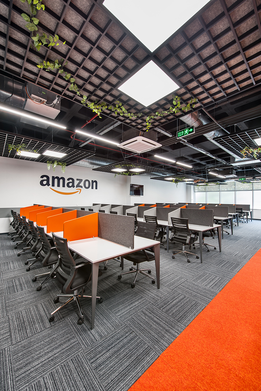 Amazon ofisi, modern mimari tasarımı ve işlevselliğiyle öne çıkar. Geniş ve açık alanlar, işbirliğini teşvik ederken, ergonomik mobilyalar ve çağdaş dekorasyon detayları, çalışanların verimliliğini artırır. Aydınlatma tasarımı ise enerjiyi yükseltir ve ilham verir.